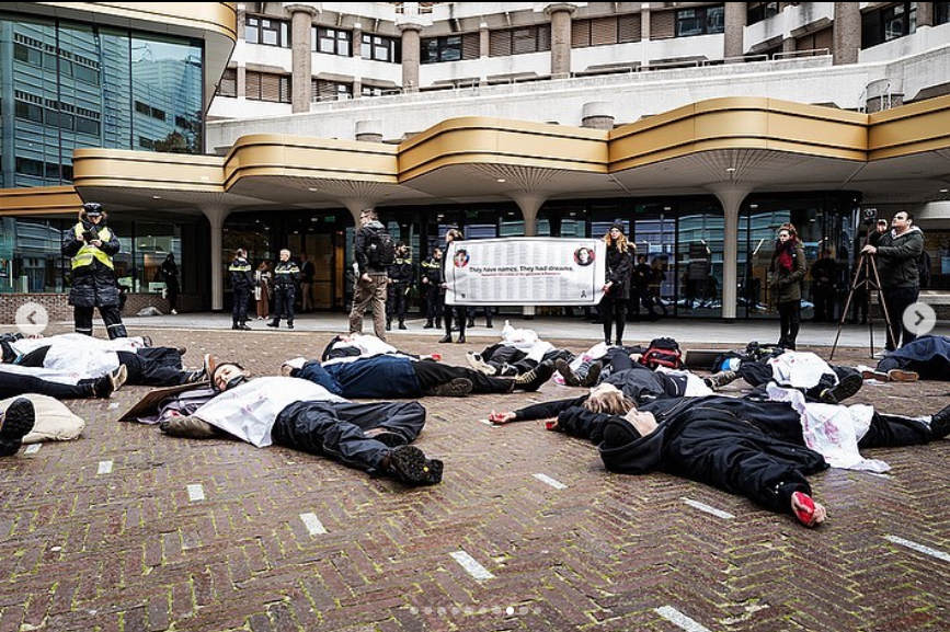 Every day: Since end of October a daily protest takes place at Amsterdam Central Station with all the banners & screen projection. In addition stories are read and victims remembered.