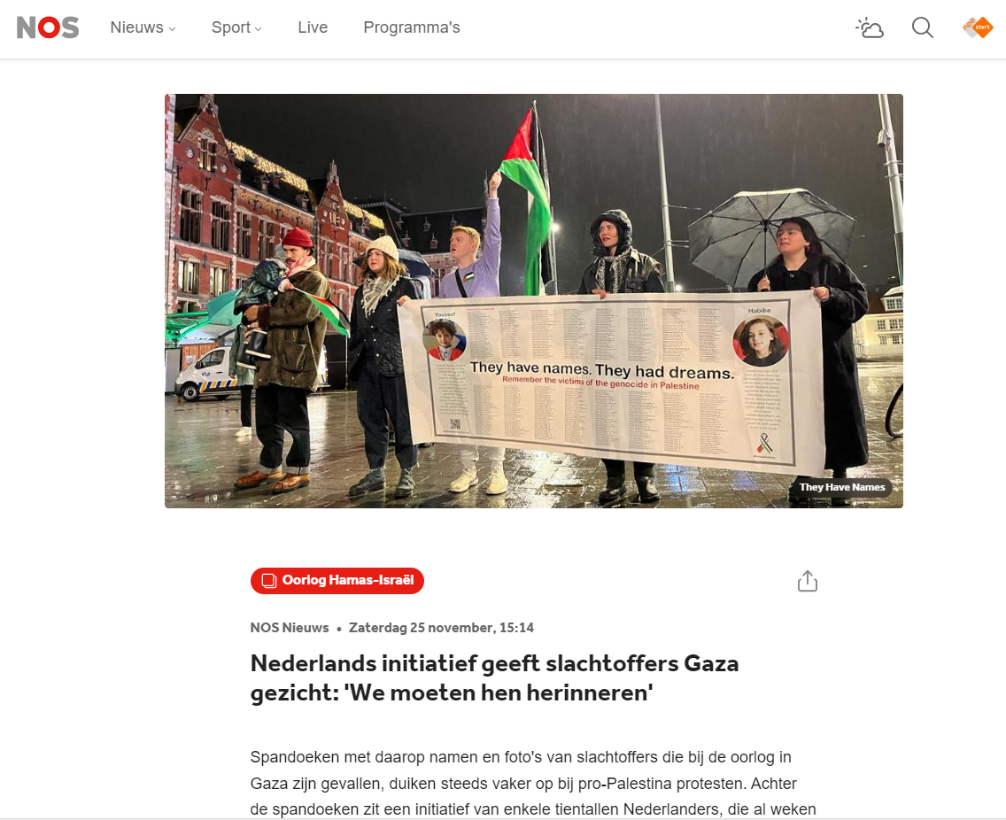 25 Nov 2023: Article at the Dutch national media agency about They Have Names.