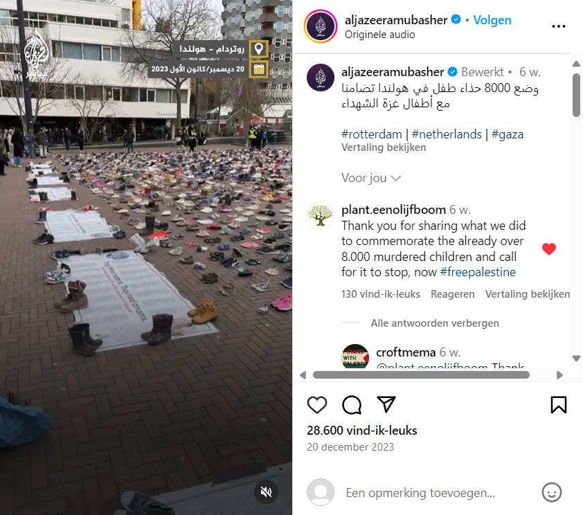 20 Dec 2023: A lot of media coverage of this event of Plant een Olijfboom. In Dutch media but als international: Trtworld, The New Arab